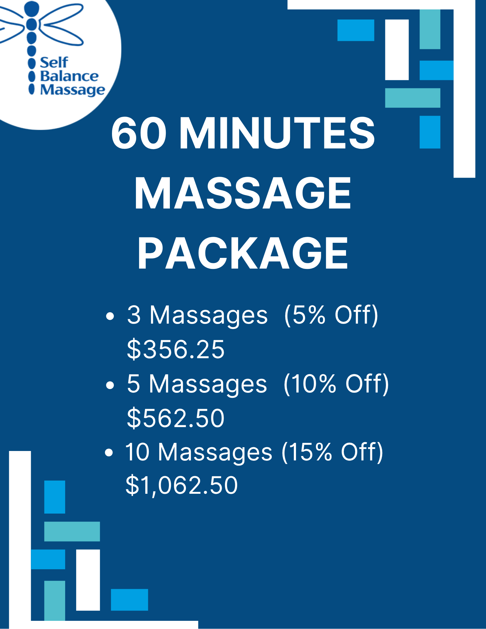 10 Massages 15% Off $1,062.50